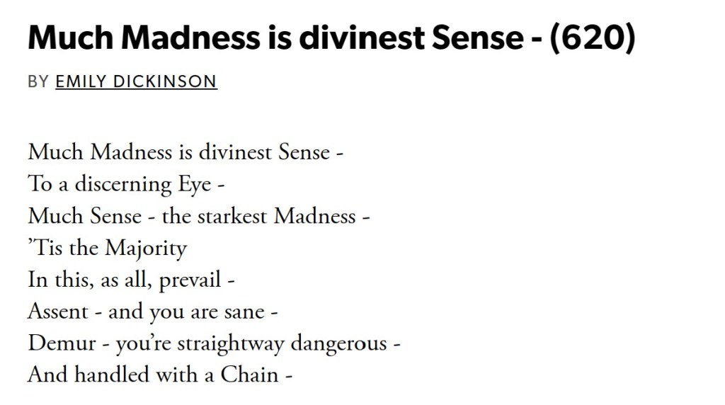 • Discovering Emily Dickenson’s poetry in aforementioned literary theory book